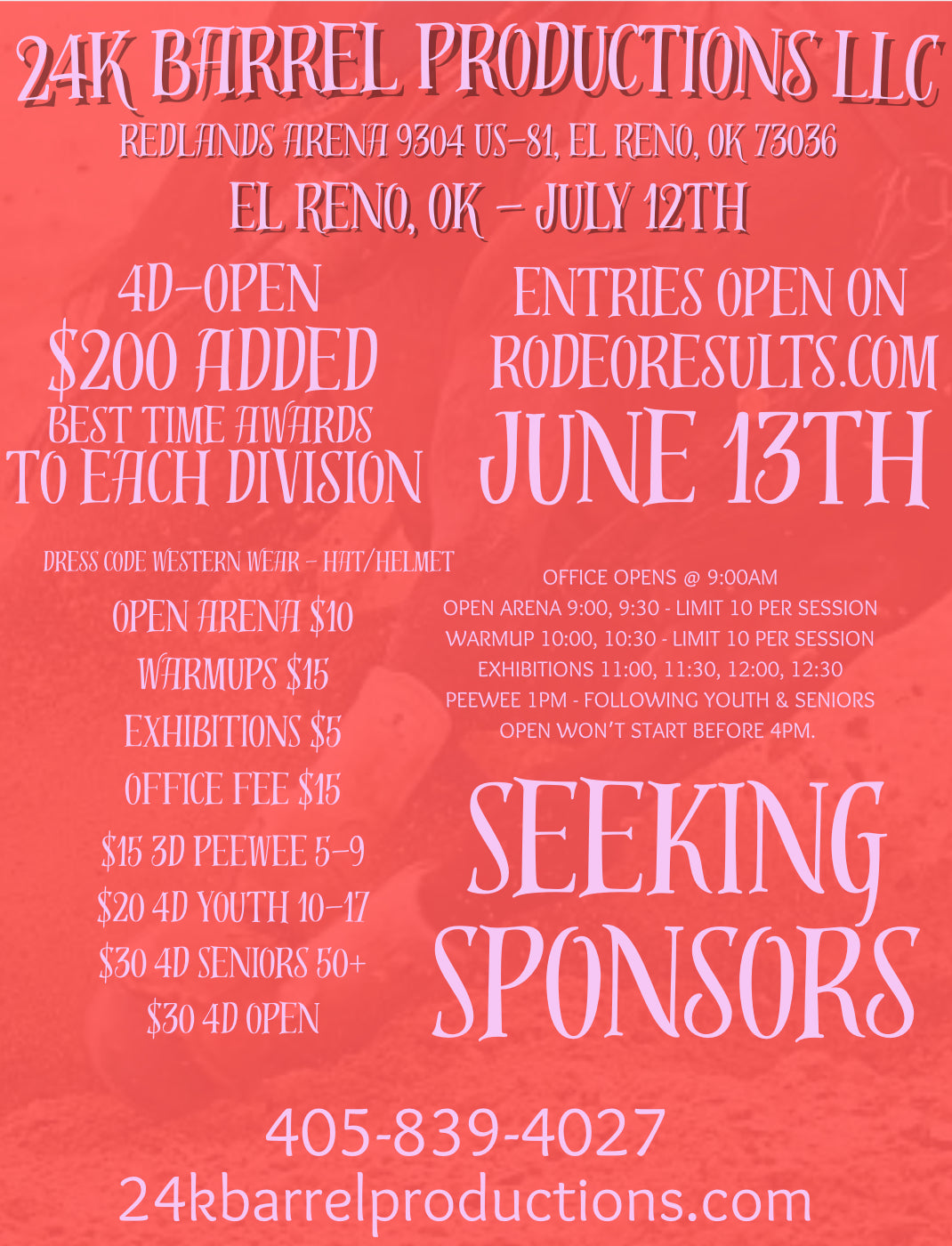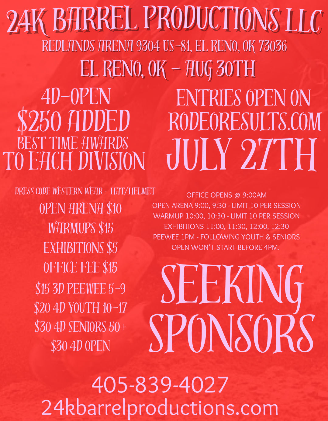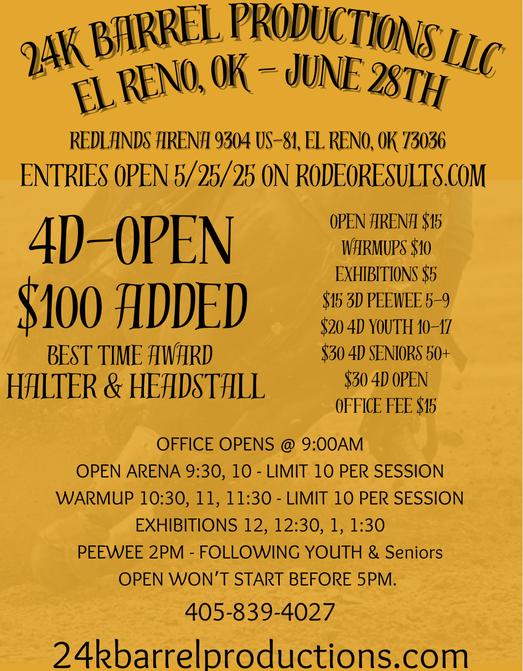You can enter all of our Barrel Races on the Rodeo Results app. Download today for convenient entries, results sent directly to your phone through push notifications, and stay up-to-date with all of our upcoming Barrel Races by using the Rodeo Results App.